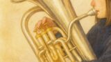 吹奏楽ではユーフォニアムがト音記号で書かれることがあります。この場合はB♭管の慣習に基づく移調譜で、記譜音より実音が長二度と一オクターブ低くなります。たとえば譜面上のCは実音B♭として響きます。見た目はトランペットの読みと同様でも、鳴っている高さは一段低い系列だと押さえておきましょう。