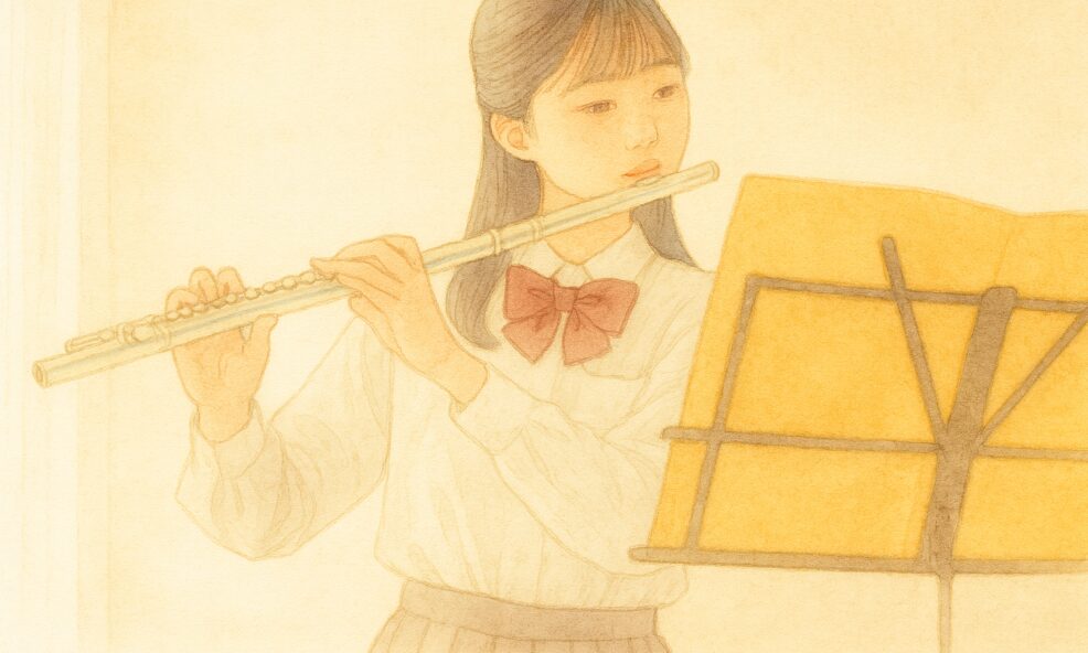 高音域での硬い音やピッチの暴れを抑える訓練としても有効です。ピッコロにも応用でき、音が先走る傾向の改善に役立ちます。高音を無理に唇で細くせず、気流の速度と角度で音色を整える感覚がつかめると、全体の音質が滑らかになります。
