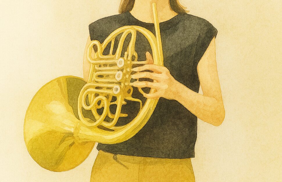 ホルンの譜面を見ながら、実音でドイツ音名を唱え、ピアノの該当鍵を押さえて音高位置を確かめます。和音練習では、各構成音をドイツ音名で言いながら同時に鳴らすと、和声感と音名の一致が深まります。