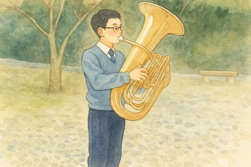チューバの音をしっかり響かせるには、チューバの立奏の持ち方を正しく身につけることが欠かせません。重い楽器を体で受け止め、無理のない姿勢で構えることで、音色の安定と持久力の両方が得られます。